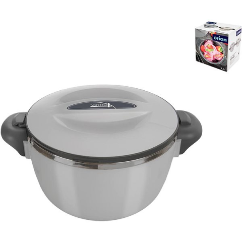 Az Orion márkájú , 1,1 literes , elegáns Termo termosz praktikus és kényelmes megoldást kínál meleg és hideg ételek tárolásához. A dupla szigetelőfalnak köszönhetően az ételek hosszabb ideig maradnak a kívánt hőmérsékleten, legyen szó levesről, főételről vagy akár fagylaltról. A szürke szín és a sima rozsdamentes belső felület modern megjelenést kölcsönöz a termosznek, amely minden konyhába és utazáshoz is kiválóan alkalmas.A termosz edény forgath