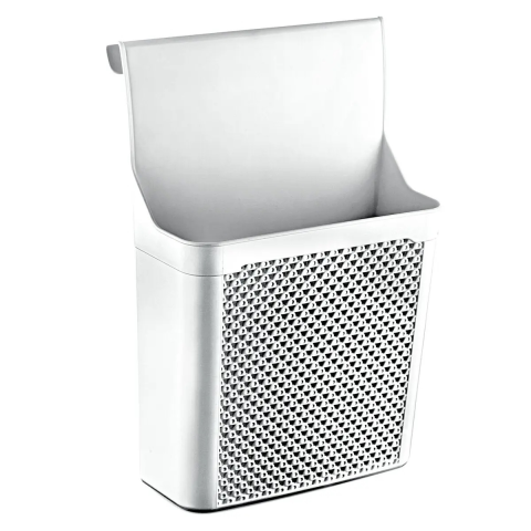 A műanyag akasztókosár tisztítószerek, szemeteszsákok, műanyag zacskók, valamint sütőeszközök, például sütőpapír, fólia, fólia és különféle apró tárgyak rendszerezésére szolgál. Tartsa őket mindig kéznél.Mérete 24 x 9/12 x 35 cm, és legfeljebb 2 cm vastagságú ajtóhoz alkalmas.