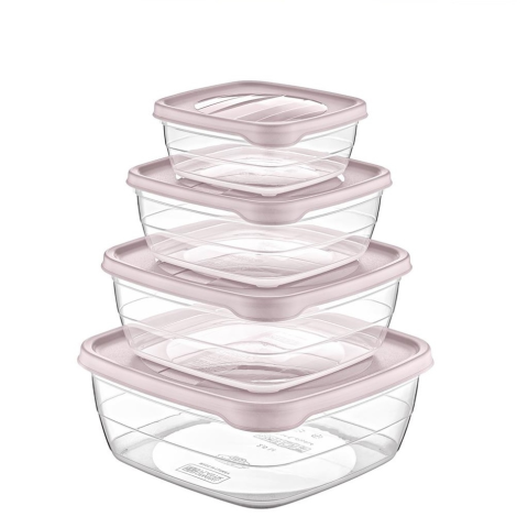 A fedeles műanyag tárolódoboz készlet kiválóan alkalmas az élelmiszerek hűtőben és fagyasztóban való tárolására (-25°C-ig), nagyszerű az élelmiszerek szállítására, melegíthető, mosogatógépben mosható (+95°C-ig).