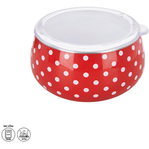 1 kép Orion Zománcozott tál + fedő, pöttyös, 13 cm