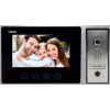A kültéri és beltéri egységhez csupán 4 vezetékre van szükség, de lehetőség van kapunyitásra és mágneszár-vezérlésére is, ehhez további 2 vezetékre van szükség. A szett egy rendkívül lapos 7˝-os LCD-monitort tartalmaz, érintőpanellel és háttérvilágítású gombokkal. Igényeinkhez igazíthatjuk a fő paraméterek beállítá