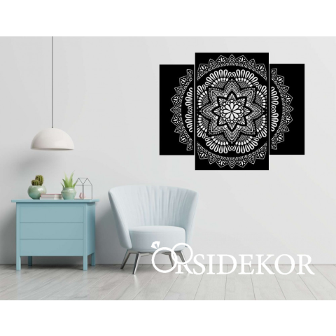 A 3 részes mandala falikép rendkívül modern megoldás otthonba vagy irodába. Kiváló kiegészítője lehet minden helyiségnek, hiszen nemcsak mutatós, hanem képes dekoratívan kitölteni az üres tereket, ezzel otthonossá és különlegessé teszi a látványt. A falik