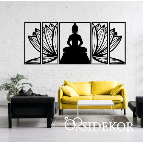 1 kép OrsiDekor 5 részes Buddha és lótuszvirág falikép fából