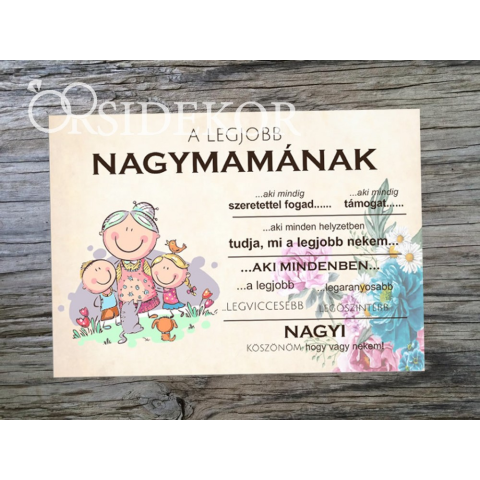 1 kép OrsiDekor A LEGJOBB NAGYMAMÁNAK Ajándék tábla - fekvő