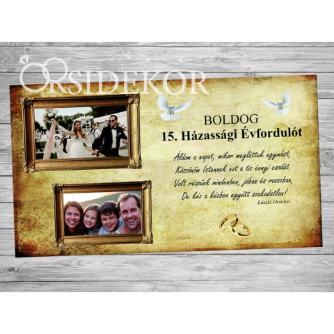 Közeleg a házassági évfordulótok? Lepd meg párod ezzel az egyedi, személyre szóló ajándékkal. A tábla mérete 14x25cm. A szöveget és a rajta lévő képeket kérésed szerint alakítjuk. Fontos! A szövegek és a képek pozíciójának módosítására nincs lehetőség.