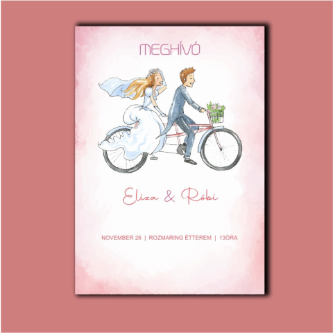 Biciklis esküvői meghívó ha valami személyre szabott meghívóban gondolkodtok és közel áll hozátok a bicikli , ez az esküvői meghívó jó választás lehet. Végre megvan a Nagy Nap dátuma, és alig várjátok, hogy kihirdessétek mindenkinek, már csak a meghívó