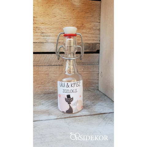 Ezt az üvegcsét üresen kapod, hogy azzal tölthesd meg vendégeid számára, amivel csak szeretnéd. Elsősorban pálinkát, szörpöt vagy magvakat ajánlunk hozzá, de a fantáziádra van bízva, hogy miből lesz köszönetajándék. Számos színezhető minta közül lehet vá