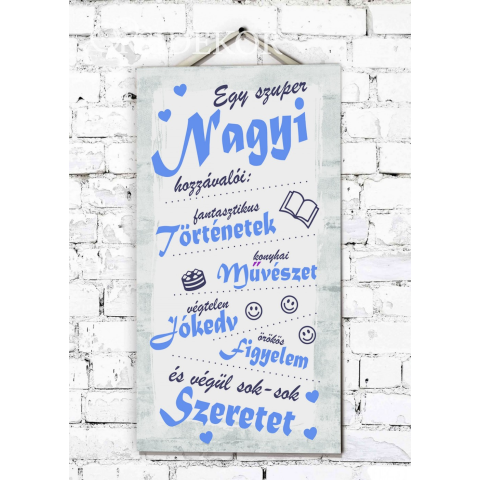 1 kép OrsiDekor EGY SZUPER NAGYI HOZZÁVALÓI Ajándék tábla - kék