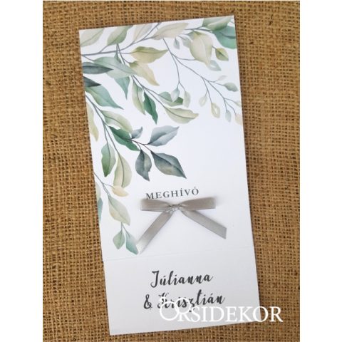 1 kép OrsiDekor Egylapos zöldleveles vízfesték mintás esküvői meghívó