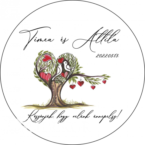 Könnyen és egyszerűen megteremthetitek az esküvő stílusát különböző matricákkal. Felragaszthatjátok a köszönetajándékra, a meghívó borítékra vagy bármely más tárgyra. Mérete: 7 cm Kérésetekre a matricát térítésmentesen feliratozzuk nevetekkel és a Nagy