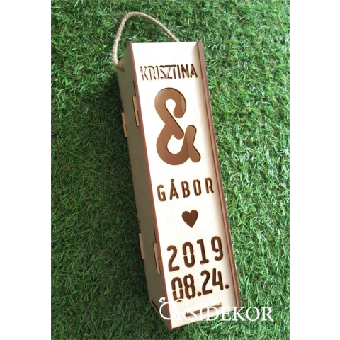 A fejlődő hazai borkultúrát igényes kivitelezésű termékeinkkel szeretnénk gazdagítani. Az egyszerűtől az exkluzívig, különleges megjelenést biztosítunk a kiváló boroknak. Nevetekkel és az esküvő dátumával ellátott fa borosdoboz. A felirat kivágott, ezér