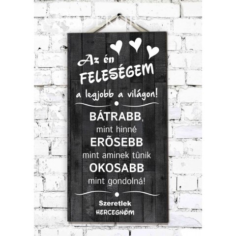 Esküvőtök alkalmával lepd meg menyasszonyod egy kimondottan neki készített ajándéktáblával! Ezzel az ajándékkal mégjobban megmuthatod szereteted és hogy mit szeretsz benne igazán. A tábla mérete 14x25cm. A szöveget kérésed szerint alakítjuk. Fontos! A