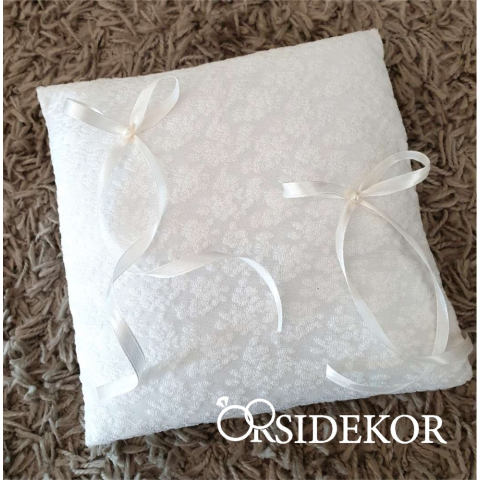 A szertartás fontos kelléke a gyűrűpárna. Ezen érkeznek az oltárhoz a jegygyűrűk, amely a szerelem, az összetartozás jelképei. Ez a praktikus megoldás biztosítja, hogy a gyűrűk elegáns módon jussanak el hozzátok. Ez a szatén gyűrűpárna csipkével, szalagg