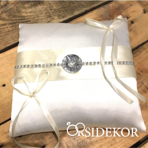 A szertartás fontos kelléke a gyűrűpárna. Ezen érkeznek az oltárhoz a jegygyűrűk, amely a szerelem, az összetartozás jelképei. Ez a praktikus megoldás biztosítja, hogy a gyűrűk elegáns módon jussanak el hozzátok. Ez a szatén gyűrűpárna szalaggal és stras