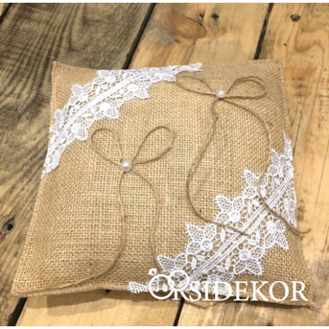 1 kép OrsiDekor Juta gyűrűpárna csipkével és gyönggyel