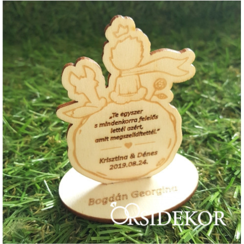 Nagyon praktikus és helyes ez a köszönetajándék. Fából készült, kis talpacskán áll, így az asztalon jópofa, vidám hangulatot kelt. Biztosak lehettek benne, hogy az esküvő után is örök emlék marad a megajándékozottak számára! A köszönetajándékra minden es
