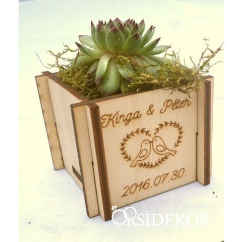 1 kép OrsiDekor Kövirózsa köszönetajándék fa kockában galambos