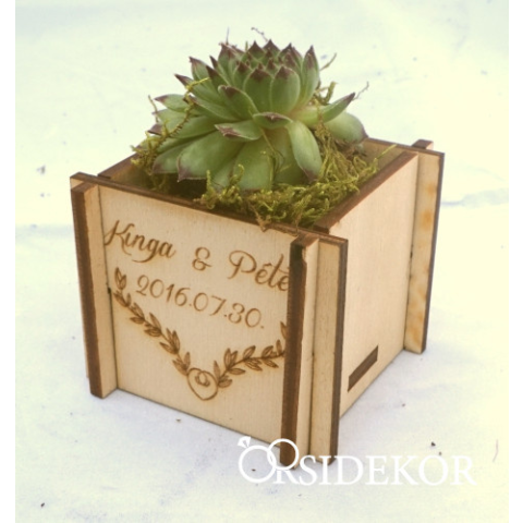 1 kép OrsiDekor Kövirózsa köszönetajándék fa kockában greenery