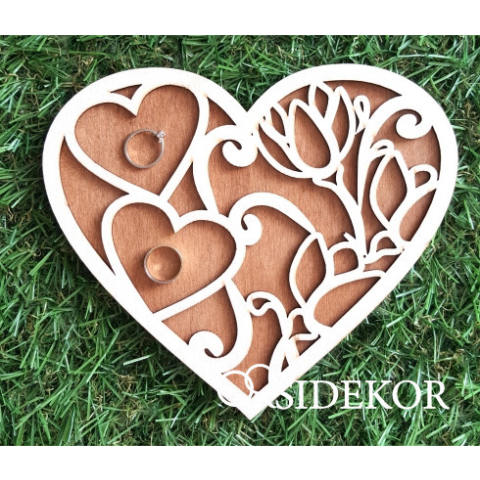 Igazán egyedi dolgot szeretnél? Akkor jó választás ez 3D hatású, szív alakú fa gyűrűhordozó. Ez a praktikus megoldás biztosítja, hogy a gyűrűk kreatív módon jussanak el hozzátok. Két rétegből áll, a hátsó réteg pácolva készül, így adja ki a minta szép