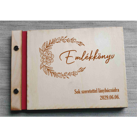 1 kép OrsiDekor Lánybúcsú emlékkönyv, gravírozott fa borítású