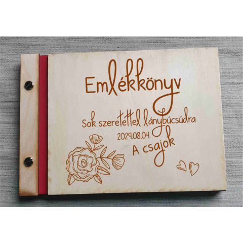 1 kép OrsiDekor Lánybúcsú emlékkönyv, gravírozott fa borítású virágos