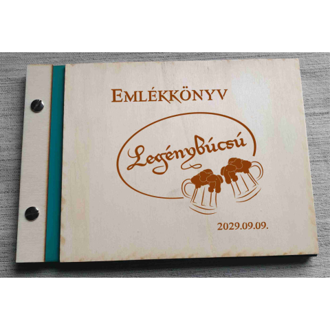 1 kép OrsiDekor Legénybúcsú emlékkönyv, gravírozott fa borítású