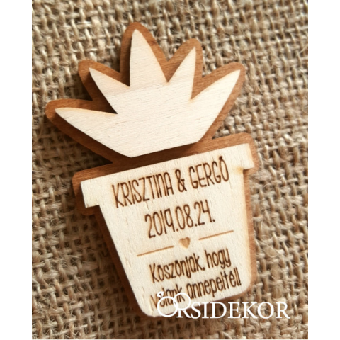 Bolondultok a növényekért és a természetért? Osszátok meg a természet iránti szeretetet a vendégeitekkel is ezzel a fából készült hűtőmágnessel. Hogy garantáltan emlékezzenek rá, kitől kapták, belegravírozzuk a neveteket, az esküvő dátumát és egy tetszőle