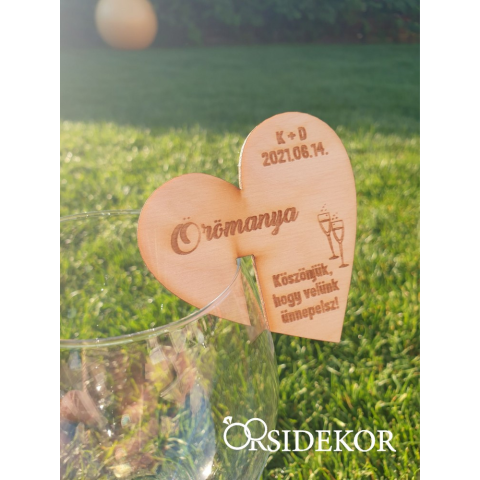 1 kép OrsiDekor Pohárra tehető fa ültetőkártya szíves