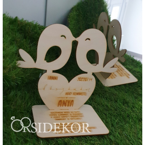 A szülőknek mondott köszönetet számtalan módon ki tudjátok fejezni. Remek módja ez a szülőköszöntő fa szív tábla, amire egyedi szöveget is kérhetsz.Elegáns galambos szülőköszöntő tábla, lézervágott fából. Egyedi ajándék a friss szülőknek. Stílus és minősé