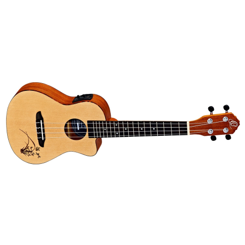 Ukulele - koncert, nejlon húrok, hangszedővel és beépített hangolóval, 18 bund, réteges test, matt felületkezelés, lucfenyő fedlap, sapele hátlap, sapele oldallapok, mahagóni nyak, dió fogólap, 380 mm menzúra, nyereg szélessége 36 mm Kompakt test és 4 húr - röviden így jellemezhető az ukulele. Ezen ORTEGA RU5CE gyerkőcök és felnőttek körében is kedvelt. Továbbá túrákra is magaddal viheted, mivel nem foglal el sok helyet. A koncert