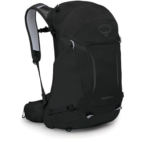 Túrahátizsák 28 l - uniszex, anyaga nejlon, állítható hevederek és hurok botokhoz és jégcsákányhoz, légáteresztő hátsó fal, kulaccsal kompatibilis, síp és integrált hátizsák esővédő, terhelhetősége 11 kg, tömege 0,984 kg, fekete kivitel Az Osprey Hikelite 28 túrahátizsák könnyebb túrákra és nehezebb trekkingekre egyaránt alkalmas. A hátizsák hagyományos kialakításának köszönhetően, amelynél az elülső panelen lévő cipzáron keresztül f