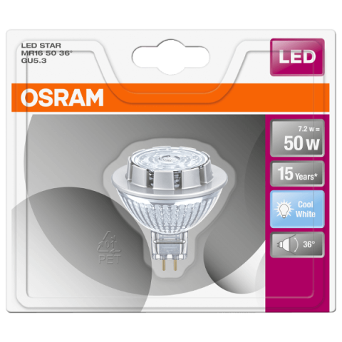 1 kép Osram LED FÉNYFORRÁS STAR SPOT MR16 7,2W HIDEG