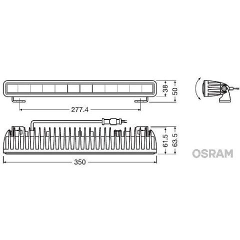 LED fényhíd - általános használatra engedélyezve, 29 W teljesítmény, 2600 lm fényáram, IP69K védettségi fokozat, méretei 50 × 350 mm (ma × szé) Technical parameters:Light Type: LEDRated Voltage [V]: 12Rated power (W):Length [mm]: 350Width [mm]: 63,5Height (in mm): 50Mounting: Screwed