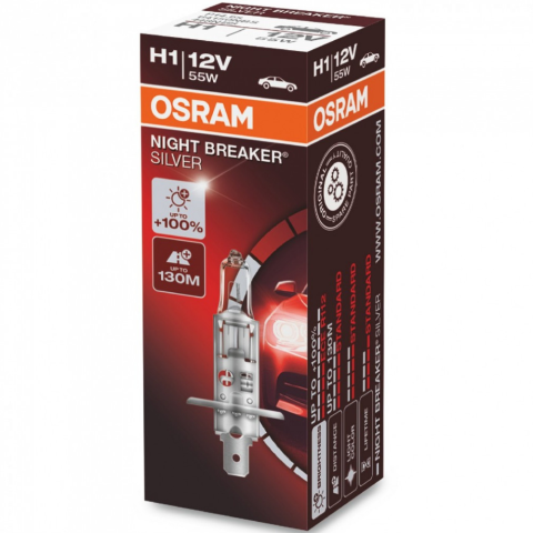 Az Osram Night Breaker Silver H1 halogén fényszórólámpa, cikkszám: 64150NBS, ideális választás azoknak, akik a mindennapi közlekedéshez megbízható, erőteljes fényt keresnek elérhető áron. Az akár 100%-kal nagyobb fényerő a minimális ECE előírásokhoz képes