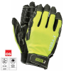 Messziről is jól látható védőkesztyű Jól láthatósági védőkesztyű, poliészter/spandex kézfejen, vízálló és lélegző membrán, mikroszálas szintetikus bőr tenyér- gyorsan szárad, 0,8 mm vastag, rezgéselnyelő hab, csúszásgátló szilikon mintával az ujjakon. S
