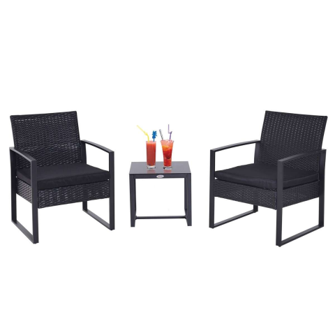 Outsunny kültéri rattan bútor teríték 2 székkel és párnával, fekete kerti bútor termékleírás