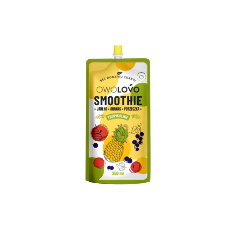 Owolovo gyümölcspüré alma-ananász-feketeribizli smoothie 200 g Fedezz fel egy szokatlan ízkombinációt a trópusi gyümölcsökkel!Az almalé, az édes ananász és a savanykás fekete ribizli tökéletes, lágy ízharmóniát alkotnak! Pasztőrizált termék. Hozzáadot