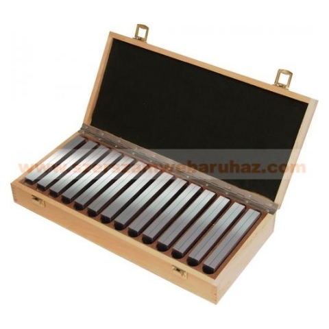 Edzett és köszörült acél párhuzamhasábok műhelymunkákra. Párban kerül forgalomba. Megmunkálás előtti szintezéséhez vagy gépműhelyekben. Keménység: HRC:58 - 62. Pontosság: ±0.005mm. 28 darabos készlet Tartalma: 1-1 pár az alábbi méretekből: 14 x 4 x 150