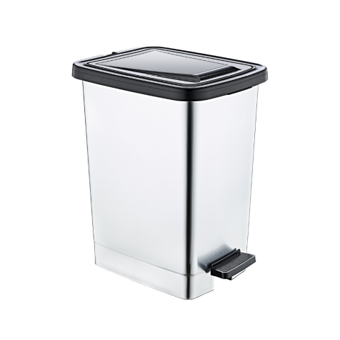 Modern 25 literes fémhatású pedálos szemetes, kivehető belső vödörrel, elegáns és higiénikus megoldás otthonra vagy az irodába. A 25L-es fémhatású pedálos szemetes ötvözi a stílust és a praktikusságot. Letisztult, rozsdamentes hatású külseje modern meg