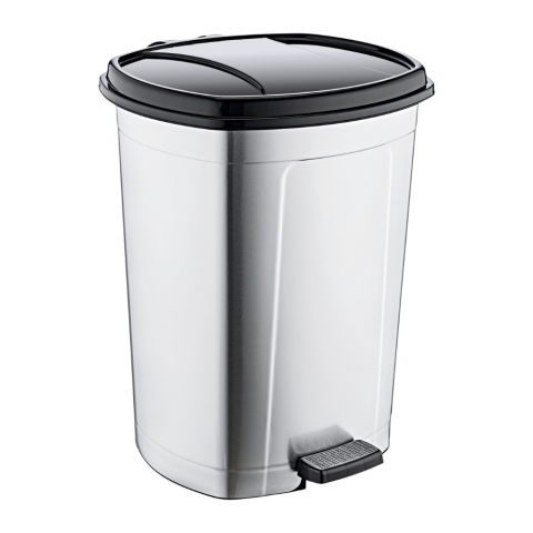 Nagy kapacitású, 50 literes fémhatású pedálos szemetes kivehető vödörrel, praktikus és modern megoldás nagyobb háztartások és irodák számára. Az 50L-es fémhatású pedálos szemetes ideális választás nagyobb forgalmú helyekre, például családi konyhákba, i
