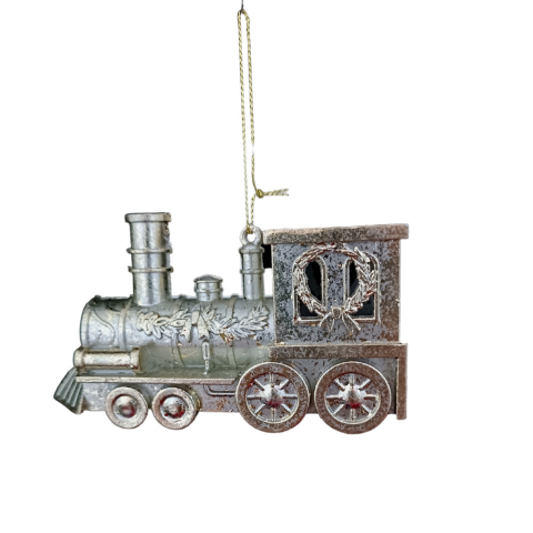 Pezsgő színű mozdony karácsonyi akasztós dísz, plasztik. Mérete: 12x 6,5x 4cm.