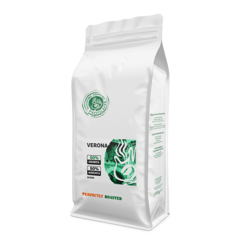 Élvezd a díjnyertes Pacificaffe Verona kávét, egy tökéletesen kiegyensúlyozott 50% Arabica és 50% Robusta keveréket! Ez a klasszikus olasz pörkölésű, csokoládés, mogyorós és karamellás ízjegyekkel teli szemes kávé romantikát csempész a mindennapokba.