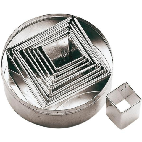 Paderno 6 darabos, négyzet alakú, rozsdamentes acél kiszúrókészlet, méretei 3,3–8 cm. A kiszúrók ideálisak sütemények, kekszek, mézeskalácsok készítéséhez, valamint torták és desszertek díszítéséhez. Kiváló minőségű rozsdamentes acélból készült.