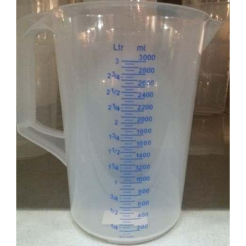 Kiváló minőségű műanyagból készült űrmértékes kancsó, 3 liter-es beosztásig. Mosogatógépben tisztítható. Olasz termék.