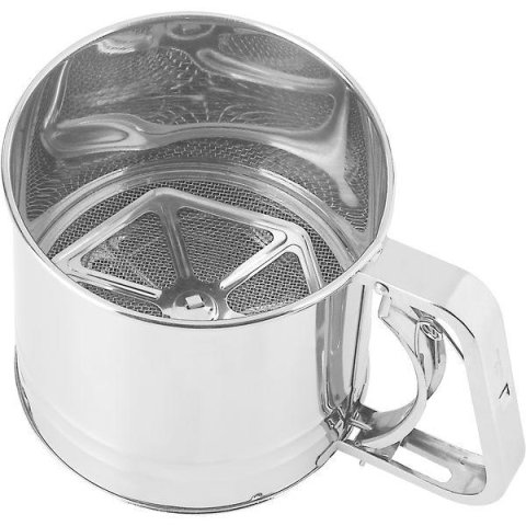 A Paderno 500 g űrtartalmú rozsdamentes liszt- és cukorszóró kiváló minőségű rozsdamentes acélból készült. Magassága 120 mm és átmérője 130 mm. Ideális mindenki számára, aki szívesen süt és főz.