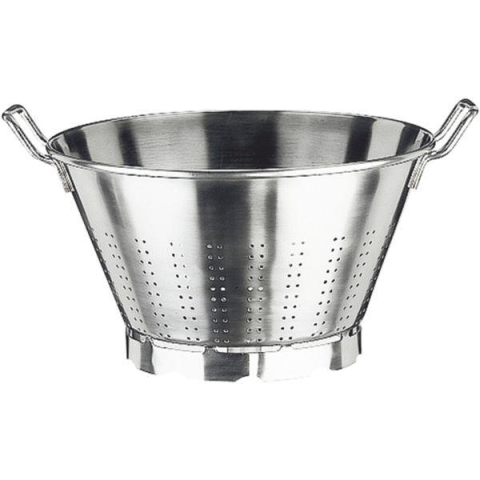 A Paderno 40 cm átmérőjű rozsdamentes zöldségszűrő 18/10-es rozsdamentes acélból készült. Kúpos alakú, és ideális tészták, zöldségek és gyümölcsök leszűréséhez. Űrtartalom: 13 000 ml.