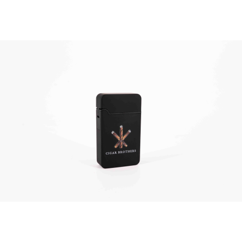 A Cigar Brothers márkájú fekete vihargyújtó piezo gyújtással, egyes szúrólánggal. Az öngyújtó alján újratölthető gázbetét található, a láng méret hátoldalon található piros színű gombbal szabályozható. Az aljából kihajtható egy 7 mm-es szivarfúró, amely éles pengéjének köszönhetően minden szivar könnyedén átfúrható. A csúszásmentes szilikon borítás kényelmes fogást biztosít, az öngyújtó elején pedig a Cigar Brothers logója