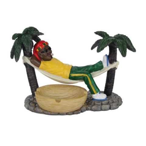 Cigarettát szívó, függőágyban pihenő rasztát ábrázoló szobor, amely alatt barna színű kerámia hamutartó található. Dekoratív megjelenése miatt a lakás dísze lehet. Különleges hamutál, ami akár ajándéknak is tökéletes választás.Méretek: 22 x 14 cmHamutartó átmérő: 11 cm