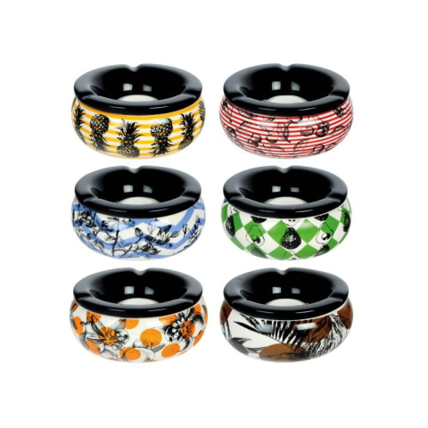 Közepes méretű kerámia hamutartó, 6 féle mintával, fekete színű peremmel. Két részből áll, ami megakadályozza, hogy a szél kifújja belőle a hamut vagy csikkeket. Ez egy egész dobozos kivitel viszonteladók részére.Viszonteladói partnereink részére: Kérjük előtte regisztráljon. Lehetőség van a hamutálakat egyesével is megrendelni, de egész tálca esetén kedvezőbb az ára.Méretek:Átmérő: 14,5 cmMagasság: 6,8 cmSúly: 650 gramm