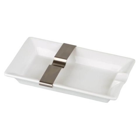 Porcelánból készült fehér színű szivar hamutál, fém szivartartó betéttel, 2